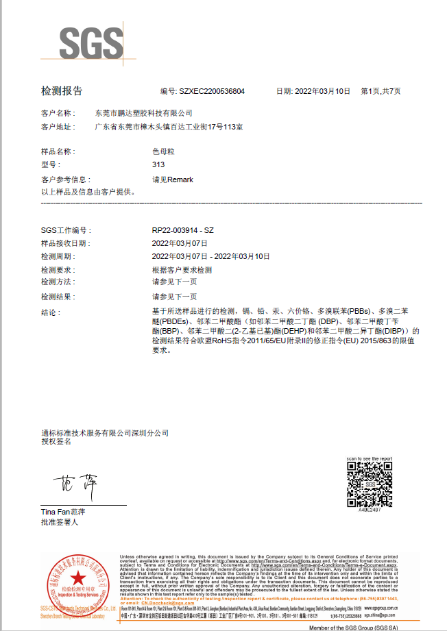 和鵬達(dá)塑膠科技有限公司合作很長(zhǎng)一段時(shí)間了,他們的產(chǎn)品質(zhì)量好,服務(wù)到位,且原材料都通過(guò)SGS測(cè)試符合歐盟REACH,PaHS、ROHS及無(wú)鹵指令,備有美國(guó)FDA級(jí)食品接觸規(guī)格物料,和他們合作完全沒有后顧之憂!